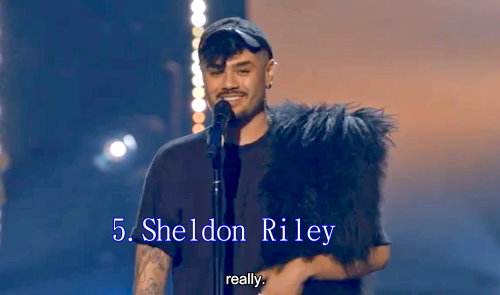 5. Sheldon Riley – Good Luck Babe,當他一開口,就緊緊抓住大家的目光,他的聲音不錯,表演很有戲劇性。** 進入前30