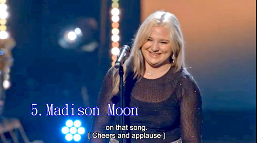 5. Madison Moon - Alone,她升 key 表演,她的聲音夠強有力,唱成搖滾版。*** 進入前20