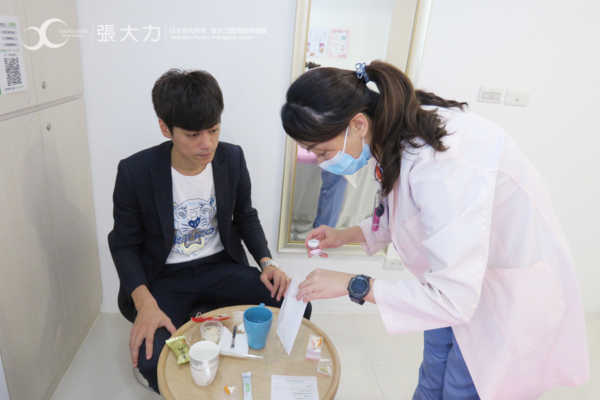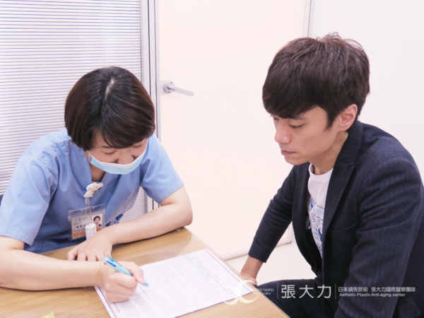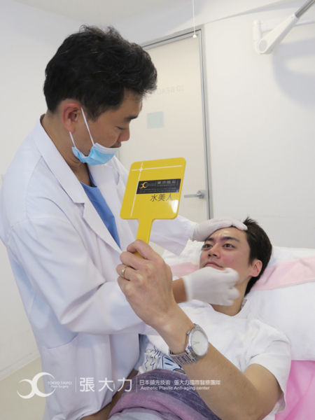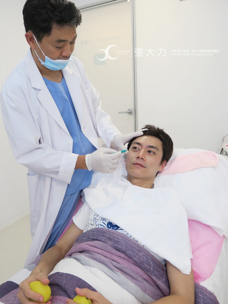 整外專科張大力院長替H先生劃出欲改善的範圍,注射舒顏翠需要講究原廠配方、精準地打在皮下區域,並避開神經及血管,在在考驗醫師技術。