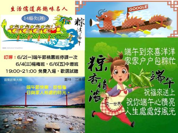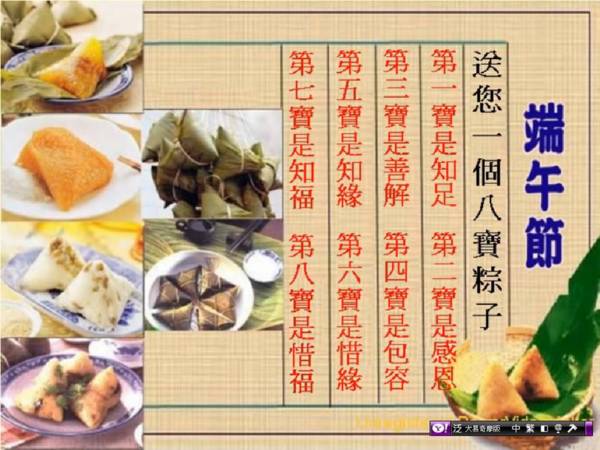 前305年,屈原反對楚懷王與秦國訂立黃棘之盟,但是楚國還是徹底投入了秦的懷抱。屈原憤而辭官自疏,離開郢都,流落到漢北。屈原流放期間,創作了大量文學作品,在作品中洋溢著對楚地楚風的眷戀和為民報國的熱情。其作品文字華麗,想像奇特,比喻新奇,內涵深刻,成為中國文學的起源之一。 前278年,秦國太尉白起揮兵南下,攻破了郢都,屈原在絕望和悲憤之下懷大石投汨羅江而死。傳說當地百姓投下粽子餵魚以此防止屈原遺體被魚所食,後來逐漸形成一種儀式。以後每年的農曆五月初五為端午節,人們吃粽子,劃龍舟以紀念這位偉大的愛國詩人。 1953年是屈原逝世2230週年,世界和平理事會通過決議確定屈原為當年紀念的世界四位文化名人之一。資料來源:維基 蘇老師 (感恩分享):讚! 各位親愛的朋友,在這特別的佳節裡,想送一句話給大家,海濤法師曾說。過,願心不退,慈悲永隨。初發心是最珍貴的,真理,經典道理的學習是非常重要的,常存我心,但是一定要能行在腳下,每一步都要謹言慎行,只要能明白自己的方向目標是正確,甚至利人利己,並不需在乎別人如何看待,挫折困難是一直都會有的只要勇敢,努力面對,它們自然會迎刃而解。讓我們攜手並進,讓世界更美好。 |