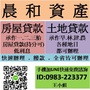 【房屋二胎】【土地二胎】【房屋借款】【土地借款】【銀行貸款】【民間貸款】【土建融】【企業貸款】【民間二胎】【民間代書】 【代償二胎】【代償民間】【民間轉銀行】【整合負債】【降息轉貸】【增貸】【利息利率】【汽車貸款】【勞保貸】【房貸二胎】 【房屋貸款】【土地貸款】【信用貸款】【銀行二胎】【民間借款】【2順位房貸】【代書貸款】【汽車二胎】【二胎房貸】【二胎】 【民間信貸】【貸款資詢】【貸款利率試算】【代書貸款】【代書專案】【持分可借】【貸款】【借款】【代書借款】【2胎借款】 晨和資產有限公司 0970-881188 陳經理 LINE ID: chenhe ※ 自有房屋坪數不限,屋齡不限,信用瑕疵或延遲繳款,負債比過高, 銀行增貸受限無法增貸,免保人、免收入證明,通通皆可辦理。