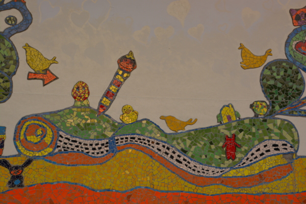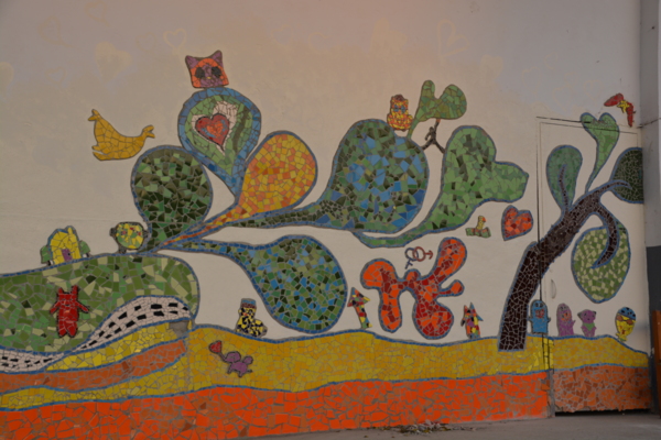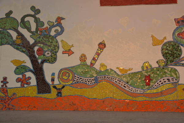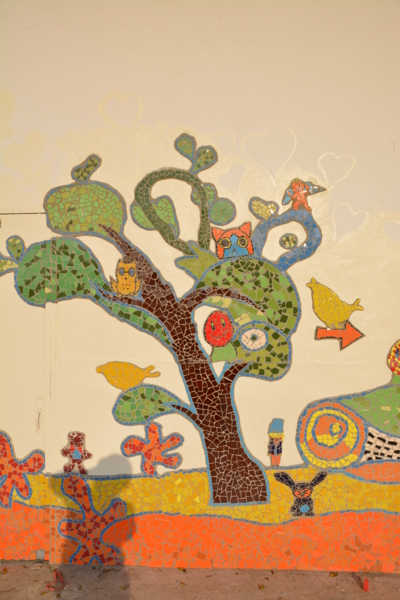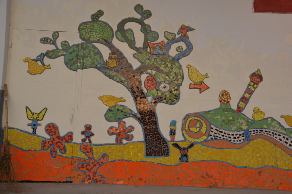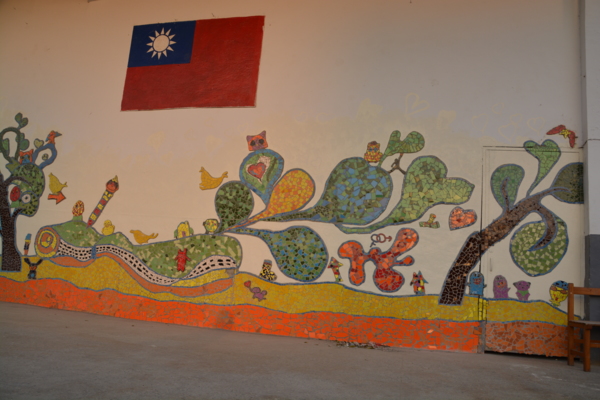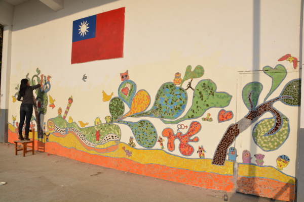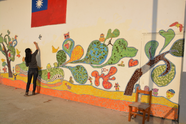 華梵大學社會服務美化國中作品.將國中畢業生生畫的圖案結合於司令台圖上.為期10-12月,三個月。