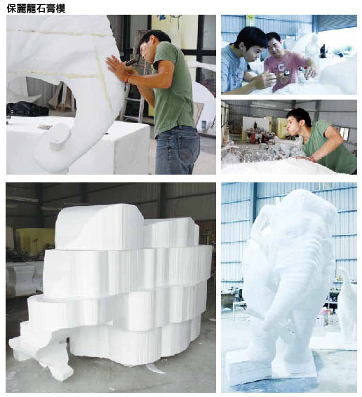 模型完成後,便正式進入放大的製作程序。透過老師的介紹,我認識了可將作品放大製作的公司,裡面經驗豐富的師傅熟知各種作品放大的形式與技法。我們經過了初步的討論後開始著手製作,過程中經歷了很多的溝通與反覆的修改,發現作品一旦放大後的確視點改變了,許多之前因為模型尺寸的關係而沒注意到的細節問題一一浮現。