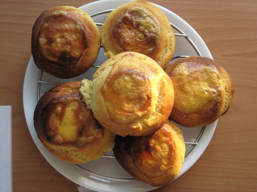 1.把蛋黃外的全部材料拌勻,軟度要像耳垂那樣 2.分成八等分,整成小圓團,略微壓扁,靜置五分鐘左右 3.塗上蛋液,進烤箱,約8-10分鐘,外表金黃即可