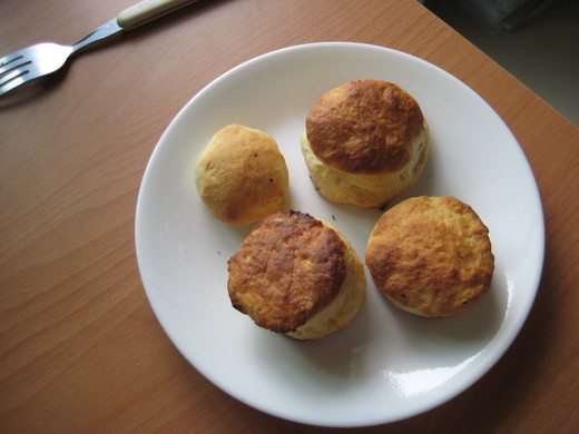 自己一個人待在房間裡,一整天,沒出門 上午九點才醒,其實有點不想醒,懶床了 然後吃蛋吐司早餐,看刑訴傳聞法則 心思卻不停想著昨天約會的快樂,然後感覺寂寞 都覺得快被寂寞吃掉了 我想,一開始是迷戀吧,然後是愛戀,再來就是眷戀 然後,我也開始不滿於現狀了啊 怎麼辦呢?該怎麼辦才好呢? 還是吃東西最實在了 揉揉麵糰,聞著烤出來的糖拌著麵粉拌著奶油的香味 什麼都忘了呢! (真是太久沒動手做點心了,手超癢的!!) 這次我還是照著小熊與廚房的非常關係的食譜下去作的 我喜歡那個食譜,也喜歡好喜歡整個網誌,整個就是Yummy! 不過,我仍然是沒有量秤的 而且今天心情不好,就隨性吧 弄到麵糰溼而不太黏手就行了,我是這麼判斷的 所以切了些奶油,篩進小蘇打粉、泡打粉、中筋麵粉 用湯匙邊壓讓他們揉在一起,然後一面隨興地重聽了剛才霧茫茫的傳聞法則 再加入了半罐的優格(我之前都是加優酪乳)、少少的糖、少少的鹽 結果因為一直覺得太溼,又加了好幾次的麵粉 然後在桌上覆上保鮮膜,用手壓平,折疊,再壓平,再折一次 壓出兩個圓型,剩下的多加了些鹽和不少的胡椒粒,分成了兩小糰,一併進烤箱 我覺得這次長高的程度比之前都還要來得好呢 味道也真的很像記憶中的肯德雞(也有可能是老王賣瓜的心理啦:P) 不過,我覺得我總是沒讓裡面有鬆軟的口感,反而像是沒有熟的感覺,真是失敗 倒是實驗性質的鹹味覺得還不錯呢,像是蘇打餅口味的比斯吉XD 不過,後來又仔細看了一次小熊網頁裡的照片 發現他的麵糰比我的白了很多,所以我可能奶油比例偏高,以致成品不甚理想吧 下次會記得好好改良的~ 為了我的胃著想,這次就沒敢再泡咖啡了(我房間了的即溶咖啡都拿回家了,哈) 只是,原本打算吃兩個就好了,沒想到一不小心就把四個比斯吉都吃光了啊 現烤出來的甜點真是太令人感動了!! 讓我一整個下午到晚上都充滿著好心情呢~ ^__^