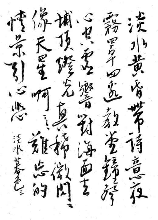 淡水黃昏帶詩意,夜霧罩四邊,教堂鐘聲心空虛,響對海面去,
