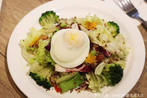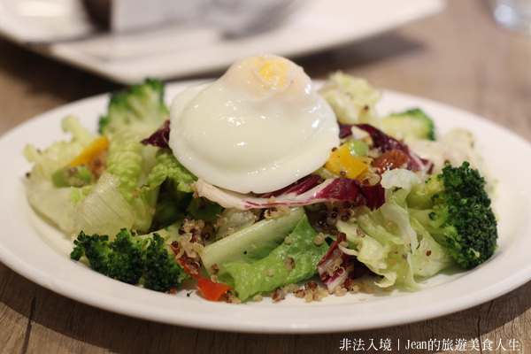 咖啡館入口與等候區 翻開菜單第一頁,點了一份「藜麥毛豆沙拉」,進口藜麥營養價值很高,但讓我驚艷的是沙拉上方的一顆其貌不揚的「水波蛋」,原來與眾不同,是由牧大畜牧場產地直送的新鮮「土雞蛋」,在母雞生長過程中採用無毒的素食配方飼料,以及德國環控設備的舒適環境,口感較之普通雞蛋更為清新,尤其蛋白咬下去覺得綿密,值得一提的是,怡客忠杭店的所有蛋料理都是採用土雞蛋,且用簡單自然的烹飪方式製作「裸輕食」系列,不用加工食品、低油少鹽,保留原食的營養與味道。 藜麥毛豆沙拉,每一份沙拉均附一顆水波蛋或溏心蛋。 所有蛋料理都採用牧大的土雞蛋,相當特別。 室內空間一隅,裝潢簡潔舒適。 另外,如果你是嗜咖啡的人,我會優先推薦肯亞AA級水洗咖啡豆,來自莊園精品的淺焙生豆,水洗處理讓品質更穩定,沒有我印象中的苦澀,倒隱隱有些果香甜味,喝起來很順口,連平時很少喝咖啡的我,也快把一杯喝完了。莊園咖啡每一款都是限量,喜歡的話也可以買咖啡豆回家手沖。此時再來點店家手作烘焙的精緻蛋糕,也可以形成一次令人滿足的小確幸。 限量的肯亞AA級淺焙咖啡,喝起來順口不苦澀。 「費小姐布朗尼」蛋糕,手作烘培,口感微甜卻不膩。 櫃中提供各類店家手作烘焙的蛋糕甜點,選擇豐富。 info:怡客咖啡--忠杭店 |