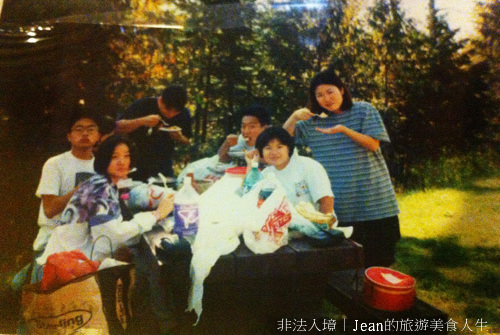 進到圖書館內,直衝中文書區,小小的一個角落,中文書少得可憐,大部份都很舊,我通常一次借個十幾本,一個月之內還,有《緣》,《王昭君》,《唐伯虎傳》,《塔裡的女人》,《楊乃武與小白菜》,《咆哮山莊》,《一個中國戰俘在越南的遭遇》等,基本上除了舊到不堪的,或是介紹某地特產的雜誌之外,其他能借的書我大概都借了。 一有時間我就在公寓裡孜孜不倦地讀著中文書,每讀完一本就覺得自己的英文更退了一步,可是中文書帶給我的感動常使我忘了自己此行的真正目的,反倒讓我想立刻回台灣深造中文。 只有當同學呱啦啦對我講著英文,而我竟然想用中文回答,以及必須愣個好幾秒才可以組出一句所想表達的英文句子時,才會使我感到恐慌。 * 9 月中我們終於找到假期,決定去落磯山脈(Rocky Mountains)玩一趟,同行的有 DoHo,鉉明,另一個韓國男同學(我竟然忘了他的名字),還有三個韓國女生,名字也不復記憶,以及我和一個日本小男生杉甫毅(感覺很像弟弟,雖然我們是同年的。) 我們一行人租了一台 Van 出發,由幾個男生輪流開車,離開 Vancouver 不到幾個小時,就在高速公路上被開了一張罰單,我們見警車在後面追趕還以為前面發生什麼事,鉉明停下車,待警察走近時,不解地問:『Did I do something wrong?』直到警察說我們超速了,給了一張約台幣一仟八的罰單,我們才恍然大悟,其實一點也沒悟,因為根本想不起是在哪一段超速的,由於這趟行程所有花費都是一起share,鉉明更不好意思地向大家道歉,但這個插曲反而讓大家一路上笑得更起勁。 美輪美奐的落磯山脈在我們花了一星期的時間後盡收眼底,我和杉甫毅沒得選擇地講了整整一星期的英文,至於『伊哩哇嗚,希哈不刺』的韓文是一句也聽不懂。吃得也很配合,因為他們人多勢眾,我真是服了那種把好幾包泡面煮在一起,撈起來放在一個大盆子裡,再加上調味料和雞蛋攪拌,然後呼嚕嚕吸著面條的吃法,竟然也蠻好吃的,雖然看起來很沒質感,也有點辣。
