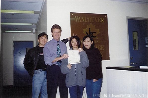 我從入學到結業,一直停留在Level blue,倒不是我的英文絲毫沒長進,而是因為我常常缺課的關係,學校不讓我昇級,真尷尬,還好這些外在的東西我也不怎麼在意,多學一些英文才是真的。 我和友理子感情好得跟姐妹一樣,我少根筋的個性把正常的她給拖累了,有時候她也會跟我一起瘋,做些很無聊的事。巧的是,我們兩人都是那麼容易笑,有時候我覺得她愛笑的程度比起我有過之而無不及,我們常常模仿Sky Train上播音員的高八度聲調『The Next Station is:Joyce,The Next Station is:Water Front…』,我每次一模仿總要惹得她捧腹大笑,連帶我自己也變得更輕鬆愉悅。 到了我的課程即將結束前,同一批也有好幾人都準備離開,於是 Farewell Party 一個又一個,通常是在某個朋友家舉行,或是一行人到外面吃飯,也有去寒酸的卡拉OK唱各國老歌。
