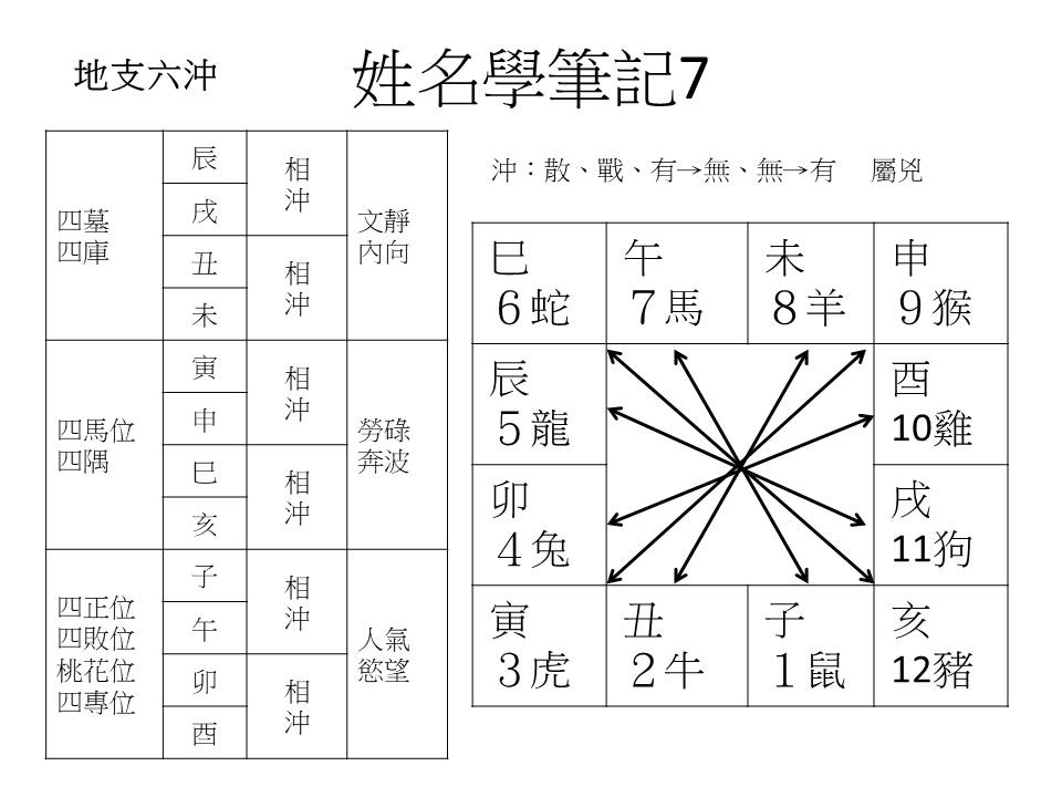 姓名學筆記7-地支六沖