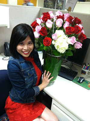 | 曾小貓剛下節目,收到江小豬送的三週年鮮花^^ |
