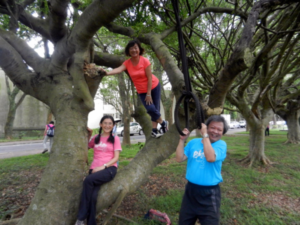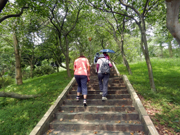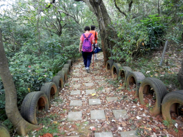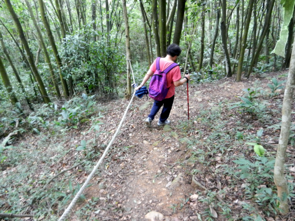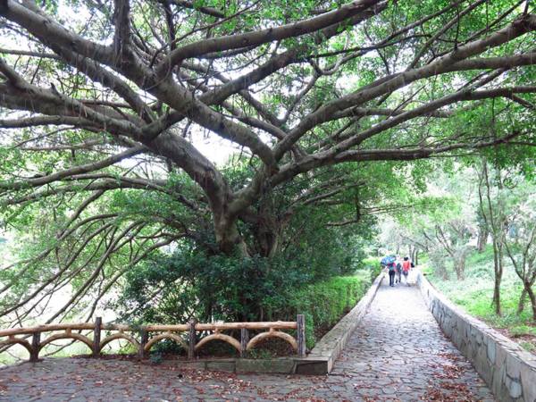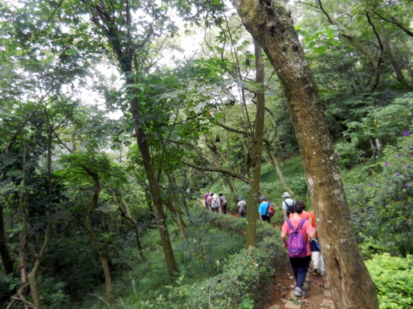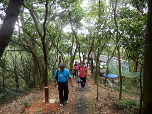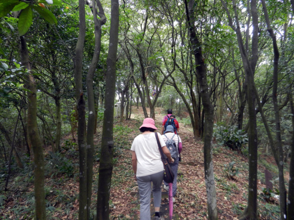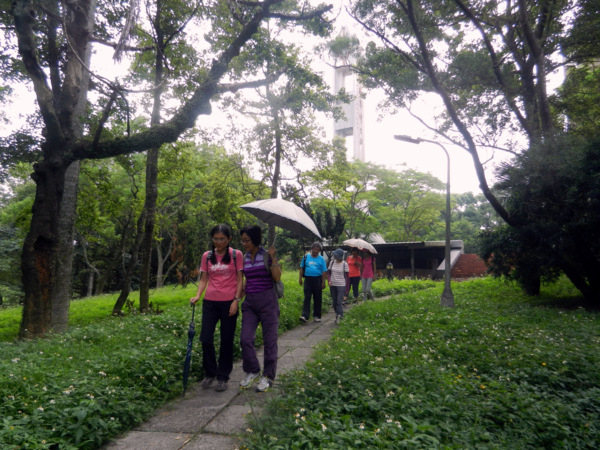 有草、有樹、有好空氣,心神為之舒暢。 仰望'華橋為革命之母"紀念碑 快11點了,才匆忙離開校園。 出了校門往左走,就看到了林口新林步道的指標。 順著指標前進就可輕鬆到達步道入口 新林步道是林口登山委員會號召義工們打造出來的登山步道,連接泰山森林遊樂區與青春嶺遊樂區的廢棄步道,全長4公里,共分五段,沿途景觀怡人、林相豐富,是適合戶外健行的好路線。 一進入步道的感覺就很好,沒有過多雕琢,保留了許多原始風貌。 步道在林間隨著地形蜿蜒出美麗的線條,坡度大時,還有繩索輔助。 踩著鬆鬆軟軟的落葉,還有樹林間青草的芳香,不自覺得大口的呼吸了起來。 才10多分鐘,還意猶未盡呢!不知不覺已經來到了第一段路的盡頭。 原來這裡是非常受到攝影者歡迎的著名景點,在層層綠意中,五楊高架與高速公路交錯出美麗的s型線條,相信到此拍攝夜景一定異常美麗。 第二段步道坡度較陡,俗稱好漢坡。因為時間關係,今天就不造訪了。 吃過阿伯辛苦準備的芭樂後,準備到蔡家鵝肉莊祭五臟廟去了。 圖、文:桂枝 |