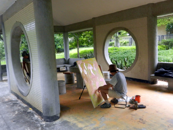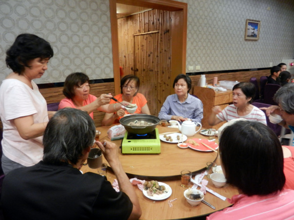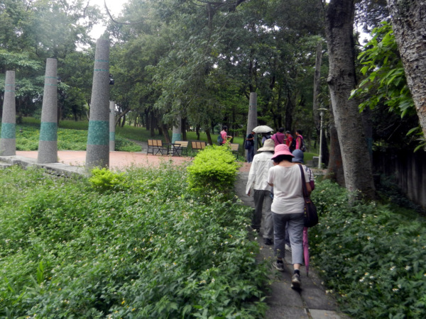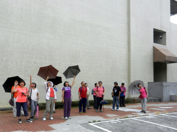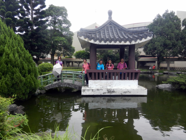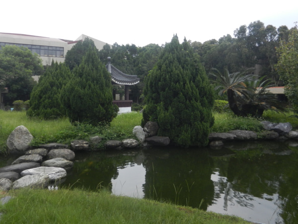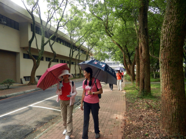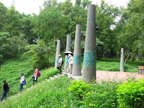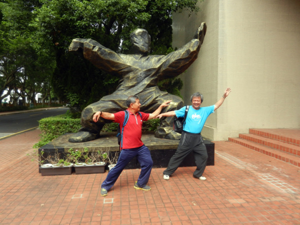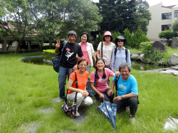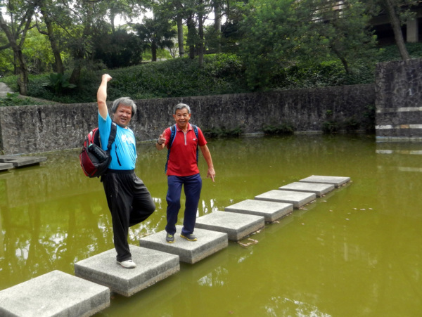 一對黑冠麻鷺的可愛雛鳥,成了今日校園裡最美麗的風景。 她那女神一般的站姿,成了眾人目光及鎂光燈的焦點。 校園藝術品的設立,提升了環境教育的品質。此作雖不若朱銘作品"單鞭下勢'那麼有氣勢,但看兩位大師跟著比劃起來,也覺得頗有神韻。 園內竟然開挖了這麼大的人工湖,羨慕啊!想當年我讀的那個師大,每當下課換教室總是人擠人,跟菜市場一樣。 美景不寂寞,總能吸引藝術家前來。 咱們就在這美麗的湖畔小憩片刻吧!一方面品嚐蔡薏為大家準備的美味酥餅。 在這裡,為了親山跫音部落格的編寫特色與方式,我們展開了一場熱烈的討論。 結論是不管部落格將來的發展如何,我們都要長長久久的走下去。 行進間,又被眼前美景吸引,彷彿進入了蘇州園林。 這是一處有江南風味的庭園,有小橋、亭台、迴廊等造景,引人入勝。 紀念碑前的林子,綠草如茵,光影甚美。