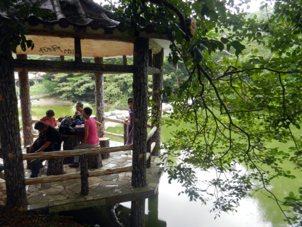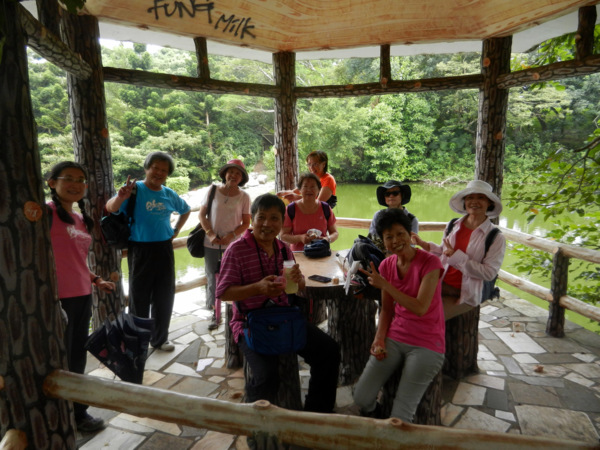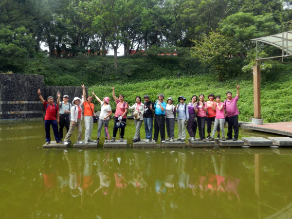 台師大林口校區&新林步道(2014/08/18) 我們這一群都是資深師大人,竟不知國立台灣師範大學在林口有一處花木扶疏、藝境優雅的美麗校區。 在台師大林口校區的蓮花池畔,雖因季節不對,覓不著花蹤,大夥兒不減遊興。 夥伴:慶輝、仟幸、顏百、永隆、採綢、新綠、嘉芸、桂枝、慶揚、英秀、椿汸、蔡薏、林真、玟瑛、美雲、麗思、苔伊等 路線規劃:參觀台師大林口校區---新林步道(共有五段,視體力走二三段) 足跡: