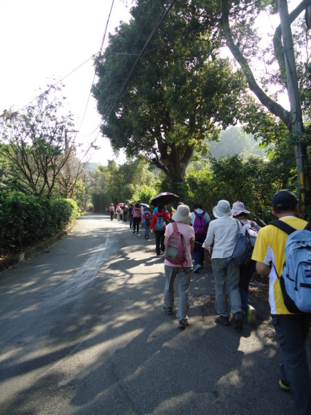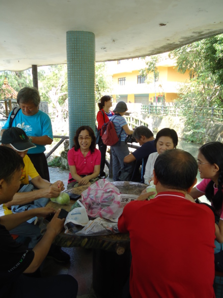 農舍旁的柚子。 路旁的捕蟲裝置,讓爬山者免於蟲害。 有點坡度的步道。 再累,也要微笑對鏡頭。 多燦爛的笑容。 步道左邊陡峭的巨石奇木。 幽靜的木棧步道。 領導也會走到滿頭大汗,這不是緩坡嗎? 最美麗的路標。右轉就到陳聰明老師家。 陳老師園子裡的粉撲,好美喔。 陳老師的宅子。 門旁的特殊造型。 野薑花。 無花果。 一直走在前頭的阿伯,玟瑛和吳芳總算讓我捕捉到一張照片。 陳老師宅子前大樹下第一次休息。 地球暖化,花序都錯亂了。櫻花竟然開花了。 臨走前,領導認出陳聰明老師。退休老師陳聰明在淡水楓樹湖山區復育「嚴重瀕臨絕滅」的台灣原生種「艷紅鹿子百合」,用人工授粉方式取得種子,大量開花。台灣原生百合有台灣百合、鐵炮百合、細葉捲丹、豔紅鹿子百合4種,其中以豔紅鹿子最特殊,原生於北部低海拔山區如萬里、平溪。他說目前不是花季,二三月花園盛開歡迎大家再來。 陳聰明老師與領導。 開心的再出發。 當地的二位阿伯熱心地教導大家認識野生植物,川七和山人參。 川七。 明朝時代建造的慈德廟。 慈雲廣佈蘇許護佑保鄉里 德義參天仙童施藥救萬民 從慈德廟可遠眺淡水新市鎮示範區,台灣海峽,洲仔灣,跤頭趺古道,淡水市區,漁人碼頭,八里焚化爐,大屯山系。 淑清的養生麵包。 河南帶回來的好想你紅棗。 第二站休息。按摩,討論麵包製作 (何老師的配方(380公克高筋麵粉,25公克奶油,7公克鹽,120公克糖,少許奶粉 ) 分享寶貴的健康毛豆。 蚱蜢不甘寂寞,也來湊熱鬧。 聽領導說這是二年前美雲迷路的岔路口。 原來新北市也有一條水管路。 好大的樹。 這兒種了好多杉松。 不開車,小巴也可以到。 風景這麼美,原來我們在陽明山國家公園裡。 這可是櫻花大道,想像三月來,櫻花盛開的模樣。 謝謝大家的大合照。真的好好看喔。 再看一眼金花石蒜。 大家來找碴,找到送你一個小禮物。 行忠堂社區有許多日本神社的遺跡,公園有步道,石雕動物園區,石雕12生肖園區,北行忠八仙洞門,是散步的好去處。 兆榮說組合就是合作社的意思。 有阿兵哥保護的社區。 第三站休息,享用阿伯的芭樂。 中午在花木扶疏由三合院改建的石牆仔內餐廳用餐,古色古香,一樓中餐,二樓咖啡廳。今天領導餐費升級,訂了一桌3000元的豪華餐讓大家享用,真幸福。這家餐廳多元化經營,有各種DIY課程。 二樓額咖啡廳,可以遠眺天元宮。 小時候玩的跳房子。 多幸福啊。蛋豆腐絲瓜蝦仁,半天筍蛤蜊湯(2鍋,招待一鍋),水煮蝦,炒三鮮(蹄筋海參蝦仁杏孢菇),清炒西洋菜,香菇油飯,白斬雞,三拼冷盤,蒸鱸魚(醃冬瓜破布子),奶皇包,芭樂,花生(兆榮河南之旅伴手)。 老闆娘與領導夫人。 |