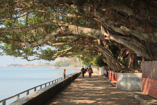 103.12.29行程:竹圍~淡水河右岸(金色水岸)~淡水海關~真理大學~淡江中學~阿給美食 水利署在94年12月用了1600萬整治淡水河,於是金色水岸自行車道出現,或水泥路或木板橋,與水筆仔、淡水河一起清澈。淡水新貌,陽光灑在河岸上,如此耀眼閃爍,魚兒都忍不住跳出貪看!駐足的我們,瞇著眼遙望美麗彩虹般的關渡橋,突然,想學狗兒們,慵懶賴在草地上,向大地撒嬌。 竹圍車站一號出口,談論週年慶行程,總是有談不完的話題。 竹圍捷運站前,美麗的人行橋,天際線增彩,只是不知幾人走過? 一號出口左轉 左望河濱自行車道指標,一路跟著走,就對了! 過橋下(尋米線蹤跡...) 渡民權路,尋自由人權... 金色水岸自行車道,高掛、低行。 旖旎風光,迤邐而行 水鳥說:溼地,滋養我以豐食。 左岸,是八里,也是巴黎,咖啡小館如蒙馬特區,大樓設計還可以更大膽些。 波光粼粼,俯首撿拾,怎一個幸福了得! 開懷回眸,巧笑倩兮! 紅男綠女,佳人好友。 大葉欖仁說:西風讓我換了火磚般的紅衣裳。 608公尺的觀音,仰看藍天白雲。 來點眺望,多些盼望~大夥兒盼著Leader健康! 一望無際,開闊讓人神清氣爽。 隨時標誌:你在哪裡? 從69年的呼籲保護,到75年劃定保護區,水筆仔已從絕地逢生,且反客為主,成為這塊76公頃裡的40公頃主人。 好友,刻意放慢腳步,聊聊人生。 建築的曲線,讓向上延伸的芒草,有了攀附處。 隨地問:星期一,答案是:笑嘻嘻。 開心笑談,塵俗已遠。 尋牆而行,隔絕塵囂。 總是盡心盡力規劃,進行溫暖的電話民調。 永遠年輕、朝氣、活力~我們的目標 保留區,不是給印地安人,是給水筆仔,也稱紅皮膚。 陽光,灑在我的臉上,張學友唱:奔放,沒人能擋在我的前方... 一日好友,日日好友。 人兒,在林梢。 就是喜歡地圖的色彩和軌跡,畫中有話。 紅衣女郎,綠意齊應。 就是要顏色,一定得繽紛! 校長、團長、阿伯、秀貴、金美、永隆、苔伊、玟瑛、淑清、麗思、如美、採綢、桂枝、寶貴、美雲、兆榮。還少了英秀、淑娟、顏百。繽紛的花,如詩的名。 寫詩得獎,讓人生更豐盈美好。 殼牌在台灣的出現,標誌著天津約開放通商口岸給英法的結果。 台灣民居造型的淡水捷運站。 紅帽子,飄洋過海,殼美,位美,價也高。 沾沾喜氣! 紅綠掩映下的陽光公園。 令人屏息的躍動,深怕大口呼吸,水光如海市蜃樓。關渡橋不再只是虹橋,而是浪漫的遠山。 淡水河純淨、雅緻,彷彿瞬間乍現,其實經歷漫長的整治工程。 天地一沙鷗,年輕人讀過嗎? 豪邁舉足,與枝枒比高。 此時的淡水河右岸,閒散的人們,三兩,寫意。 岸邊的建築,搭配捷運,改變淡水天際線。台北街頭,已逐漸改觀。 風帆般的涼亭,很希臘! 美人,美物。 童心未泯的老師,舞著、呵護著童年。 南洋風的草屋,餐廳除了美味,還需提供視覺,方是美宴。 偌大的樹影,包裹了我們。前方睿智女子,總能輕鬆完成許多事。 喜歡樹影下的光影斑駁,伸展的手臂,企圖親近水岸。 愛貓的女孩,貓也愛的女孩。 大膽的鮮黃、亮紅配,顯眼。 笑容可掬,真想捧起。 遠方,真理在八角樓裡。 103年10月方開放的古蹟~淡水海關碼頭。獨留此門面,見證英國領事巡視的船屋。當年,英國領事館,不只是處理本國業務,還幫忙他國。這是帝國主義的海外合作。右前方,就是本想進去品嘗的領事館咖啡,這回時間不夠,改日囉! 兩座港務倉庫,是開港通商的建築,洋人在條約中要求設立海關,淡水屬於開放的正港,管理全台貨物進出。北部的茶葉,由山區經水運到大稻埕廊下撿茶、包裝,經由淡水河,運到愛喝台灣烏龍茶的美國。 少見領事館咖啡館的後方,英國領事其實住在紅毛城裡的領事館裡。 真理大學美麗的尖拱,內部管風琴,是國內少見,一在國家音樂廳,一在艋舺教會,一在此。 保留當年英式紅磚、拱廊,擋住陽光,也流通空氣。 校內這座牛津理學堂,是加拿大牛津郡的人們捐款所建,馬偕的家鄉。 哥德式教堂的現代變形,用鋼筋混凝土,不是中古大理石,但一樣崇仰上帝。 哪一家才是正統,外地人和本地人說法不一。 揚げ(あげ)~阿給,包著粉絲的油豆腐,老闆說要攪拌、浸泡到粉絲吸飽了湯汁再吃。講究時,一臉誠意。 號稱:周杰倫套餐~阿給、肉包和魚丸湯。 淡水老街上的現代彩繪。 馬偕博士的半身像,鬍鬚蕃仔,是當年居民的暱稱,如今依舊守護著,當年願意接納他的子民後代。偕醫館,就在他的右手方巷內,當年的診所,今日的小型展示館。 炸好會站的花枝,揮手告別今日行程。 攝影:顏百 文字:兆榮 |