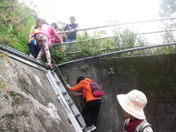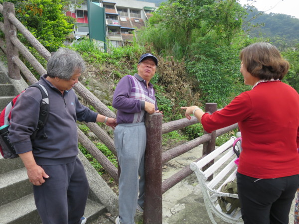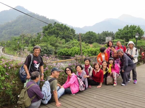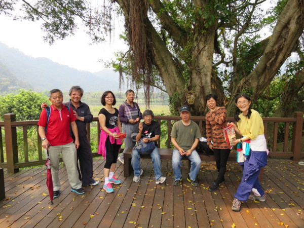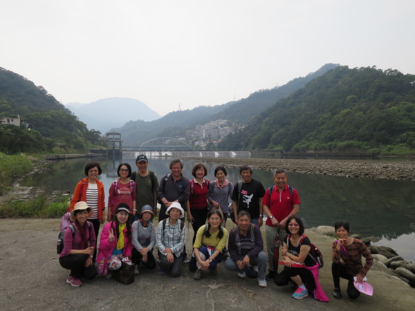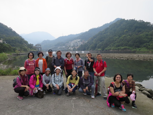 日期:2015/03/16 天氣多雲 夥伴:慶輝、仟幸、鎮揚、淑清、顏百、兆榮、永隆、採綢、苔伊、椿汸、林真、秀貴、大小美雲、金美、謙臣、淑娟、奕賢、炘培共19人 健行路線:櫻花街→自強路→屈尺景觀公園→屈尺引水圳道步道→屈尺水岸自行車道→屈尺堰→屈尺堰下岸堤道→梅花湖岸步道→屈尺景觀公園觀景台→自強路→屈尺路→岐山巖→九丁榕百年老樹→鄉野花園餐廳→頂石厝路→J&K 時尚饗宴餐廳→濛濛谷→折返→屈尺國小→巧山味土雞城 (一)屈尺景觀公園與屈尺引水圳道步道 屈尺景觀公園位於梅花湖與自強路之間,是一座小而美的公園。設有籃球場、兒童遊戲區、觀景平台與洗手間。 屈尺引水道步道的入口位於籃球場附近,其底下是屈尺引水道。 1907年日本政府興建「粗坑堰堤」(即今日的屈尺壩)攔截溪水,為了將溪水引入下游的「小粗坑發電廠」進行水力發電,建造了這條「屈尺引水道」。「屈尺引水道」長約2.6KM,我們今天走訪的只是其中一小段。 在新店捷運站集合,轉搭849公車上山 在梅花湖站下車。新烏路與櫻花街口的賞櫻涼亭 左轉自強路 直走到湖畔就是屈尺景觀公園 屈尺景觀公園小而美,設備完善 很逗趣的一張團照 充滿想像的石雕 簡易健身設備 老少皆宜的鞦韆 很適合帶孫子來玩 觀景平台可觀賞梅花湖。旁有洗手間 屈尺引水道步道入口就在觀景平台下方,步道下方是屈尺引水道。 步道沿途也設有觀景平台,還有椅子可供休息 屈尺引水道在此由明渠轉為暗渠流向小粗坑發電廠 屈尺引水道步道終點,總長約300公尺,走來輕鬆愉快。照片左方鐵門是梅花湖步道入口 屈尺引水道步道續直行是水岸自行車步道 自行車步道終點可接新烏路,沿途可觀賞屈尺堰。屈尺堰下有人釣魚,應該有下去的地方 由此下去可達屈尺堰下方。雖有警示牌,但還是忍不住好奇心