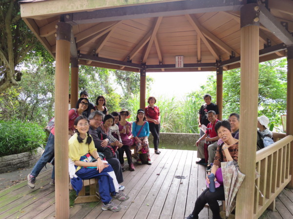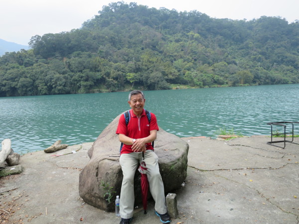 有叉路通往J&K時尚饗宴。J&K時尚饗宴以前稱隱花園,聽說有幾位夥伴來享受過。後來改名J&D,現在叫J&K。是高價位的消費場所。 優聖美地因為有大型展覽,暫停開放參觀 大夥續往濛濛谷前進 屈尺自然生態園區,大門深鎖,不知是私人或公家園地。 濛濛谷露營區,現已停止營業。右側道路可續往濛濛谷湖畔 藍色鐵柵門旁,土地公廟右側有小路可進入湖畔。 昔日濛濛谷已成今日濛濛湖,湖光山色依舊迷人,一樣是談情說愛的好場所 遠方是藍色壩堤是「直潭堰」,1973年開工,1978年完工,6月開始蓄水。直潭堰旁有一個全東南亞最大的淨水廠。 穿紅衣的阿伯看起來更年輕了 這pose很自然,不輸專業model