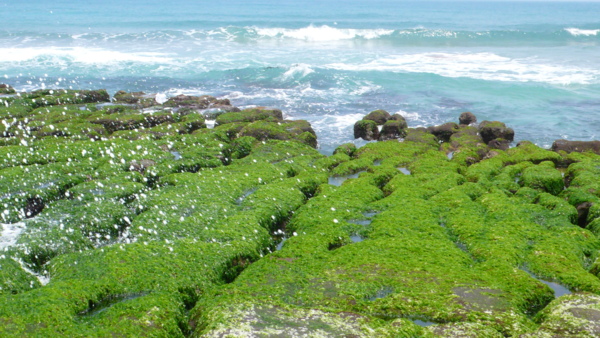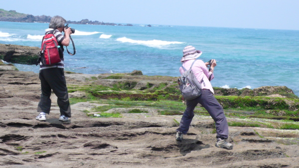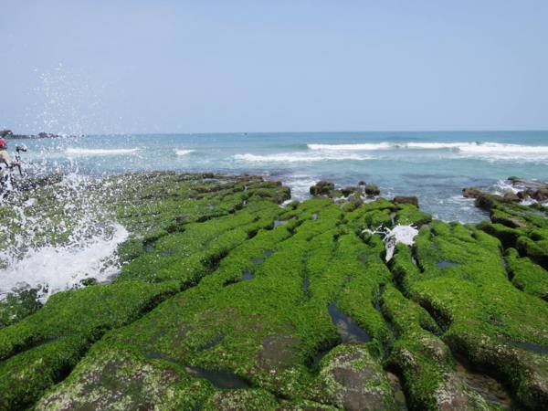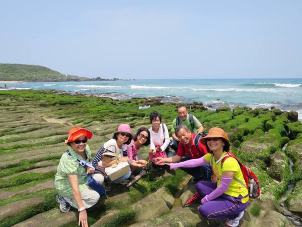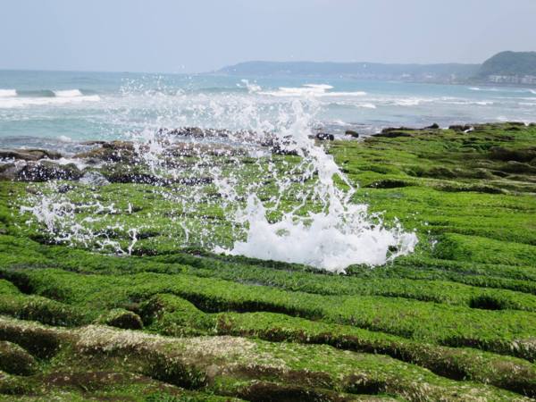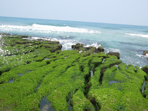 冬季多東北季風,浪花滋潤了石槽的岩面,也開始滋生石蓴等綠色的海藻,等到四月份東北季風漸歇,石槽就長滿了一大片綠色的海藻,而形成這片令人驚嘆不已的「綠石槽」海岸景觀。 但綠石槽只出現在四、五月,隨後海藻將在夏日陽光的曝曬下消失。因此,這段短暫而美麗的季節總是吸引許多遊客,及愛好攝影的民眾前來捕捉綠色海岸的奇景。 領導英明,讓我們趕上最美麗的月份,選了一個晴朗的星期一,拍下這許多超級美麗的照片!