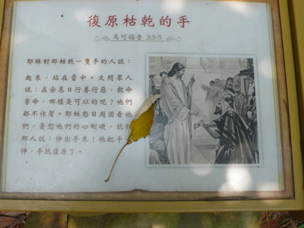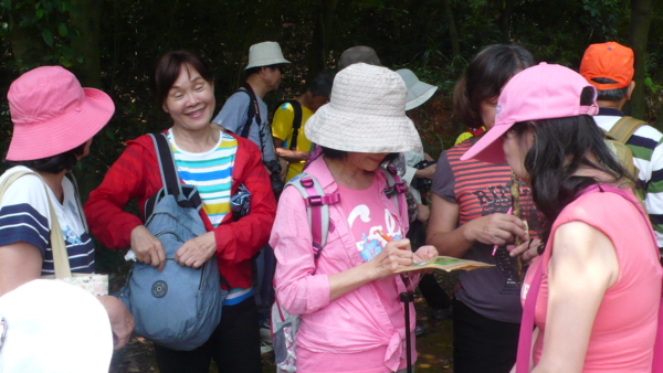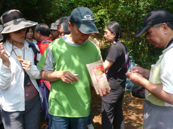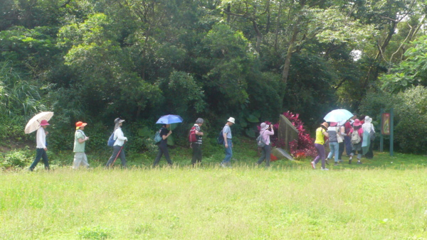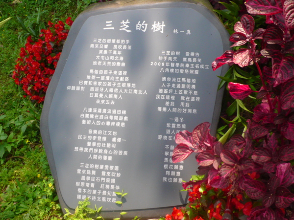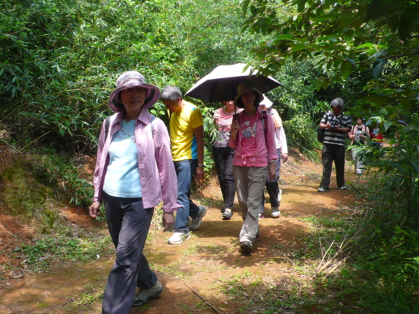 校園草地上多株迎風招展的百合。 大夥由醫學院的停車場出發。 個個神清氣爽,好路又是好時光! 因為跌傷而在肩膀裡頭置入鋼片的吳芳也勇敢地來參加,忍不住給她按讚! 走不多遠就來到步道的入口。 步道入口有紀念石碑。 有一首林一真教授的詩。 我是林真! 步道入口的右邊還有告示牌,標示健走的路線及沿途設施。 真愛森林療癒步道長約1.5公里,全是平緩的泥土路,沒有階梯。 沿途森林綠蔭,夥伴一路怡然而行,浸淫在芬多精與負離子的森林浴中。 馬偕博士在北台灣醫療傳道,前後將近30年,解決及減緩無數病患的痛苦,令人感念。 這是紀念馬偕博士的馬偕池。 綠草如茵的逍遙坪。 除了竹林、竹筍,還見到野菜和魚腥草。 沿途設置了一系列療癒解說牌,介紹馬偕博士醫療傳道、馬偕醫院醫治世人的事蹟。 也有聖經福音心靈話語。 大家說冒出土的竹筍又老又苦,林真可是嚼得津津有味呢! 團長請大家吃果乾,是他的姪女婿堅持製作天然無任何添加物的原味果乾。 阿發的天然小舖,有香蕉、蘋果、鳳梨等果乾。 好吃! 趕快訂一包! 野花在陽光下格外鮮豔!