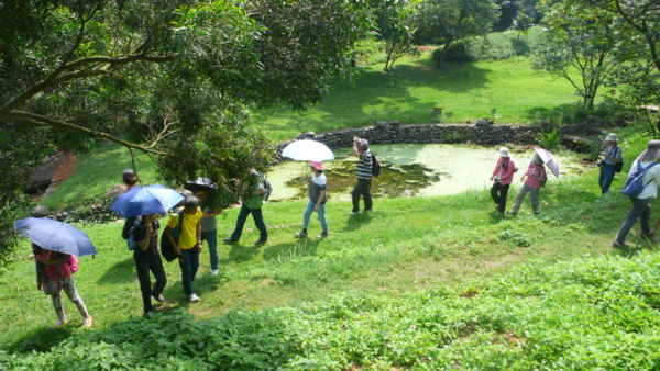 馬偕池谷地全景 老梅綠石槽 夥伴:慶輝、仟幸、鎮揚、淑清、永隆、採綢、顏百、兆榮、偉文、桂枝、椿汸、謙臣、英秀、蔡薏、林真、如美、玟瑛、寶貴、麗思、大小美雲、苔伊、吳芳、淑娟、進豐、慶揚等26人 足跡: 一、馬偕真愛森林療癒步道:真愛森林步道就在馬偕醫學院的校園內。 2009年才成立的馬偕醫學院是台灣最晚設立的醫學院,創校六年。校園位於三芝的丘陵台地上,風景優美,從學校教室就可以眺見三芝的海洋風光。