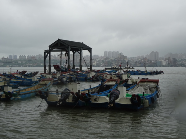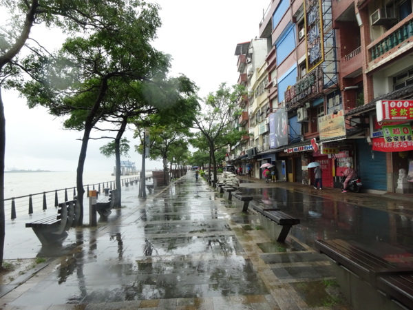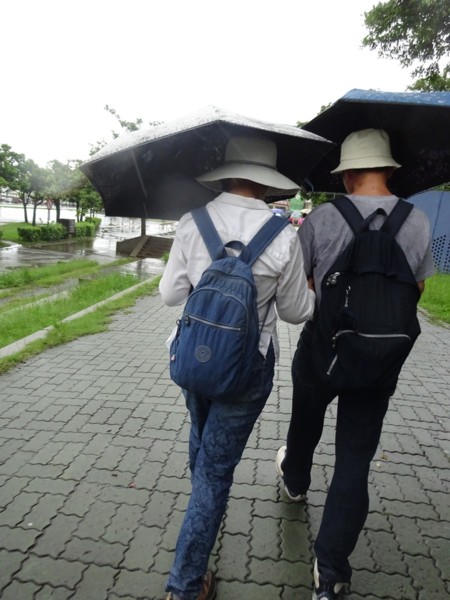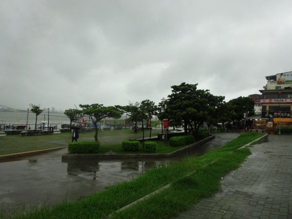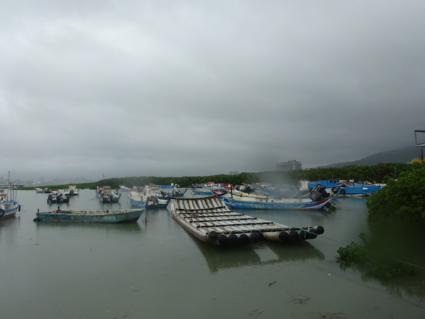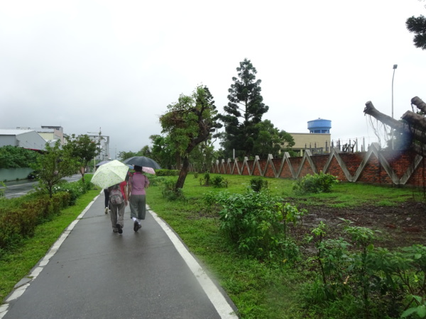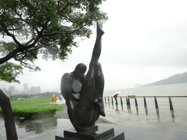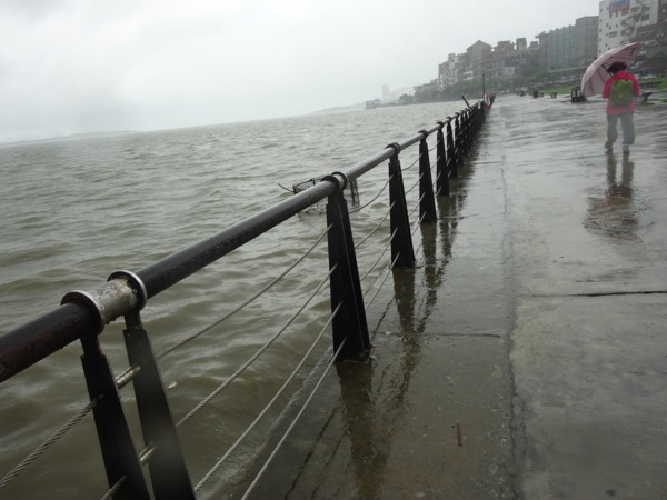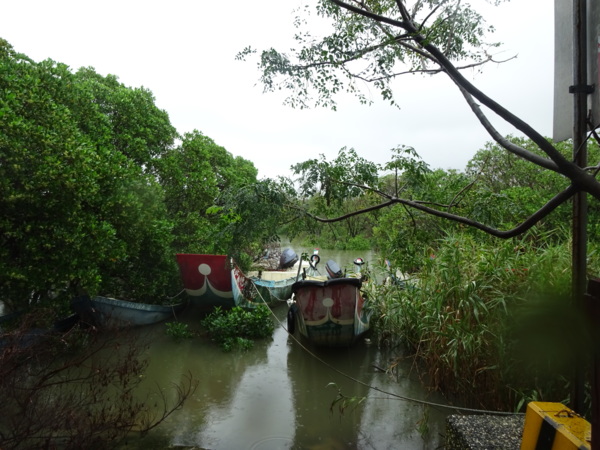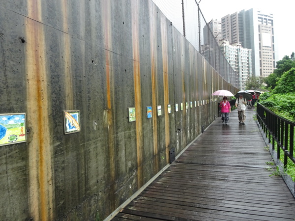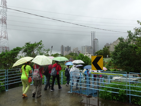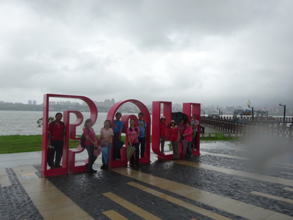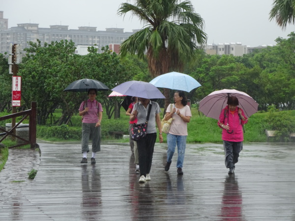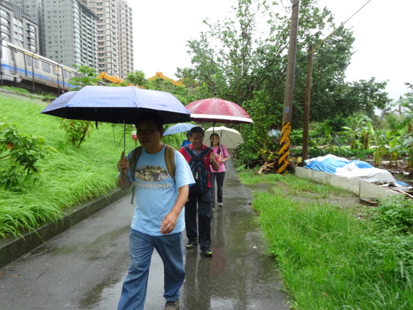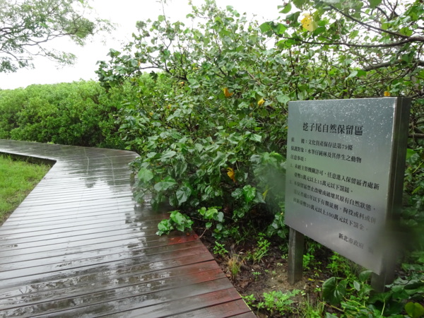 淡水河畔的一席盛宴-自然生態與歷史文化之旅 時間:2015.08.31 集合地點: 9:00紅樹林捷運站2號出口集合(洗手間在1號出口) 健行路線:紅樹林捷運站→紅樹林自然生態步道→淡水百齡公園→淡水文化園區→淡水捷運公園→淡水渡船頭→搭渡船到八里左岸(可使用悠遊卡) →老榕碉堡→八里左岸公園→水筆仔公園→挖子尾自然保留區→觀海長堤→文化公園→十三行博物館(免費參觀)→陽光廣場涼亭午餐(自備) →搭新北市公車洪13回關渡捷運站 夥伴:慶輝、仟幸、鎮揚、淑清、顏百、兆榮、椿汸、新綠、英秀、桂枝、偉文、林真、蔡薏、尤美雲、陳美雲 、 玟瑛、吳芳、淑娟等18人, 足跡:時而霪雨霏霏,時而大雨滂沱,我們仍遊興不減,走入紅樹林的步道! 紅樹林有聞名全世界,最大的「水筆仔」純林。佔地廣達76.4公頃,木棧步道與賞鳥高台等休閒設施逐步完整,是容易貼近又有趣的自然生態區。風雨漫天飄晃,雲層烏黑壓頂,岸邊漁舟散置,遠觀舟船,如見而未見,不見而似見,河面惝恍而飄渺,幾分悽惻! 淡水,濃妝淡抹,豔陽陰雨,皆相宜! 我們參觀淡水文化園區的骨牌倉庫,八里左岸的十三行博物館,細細品味煙雨中,淡水獨特的自然人文風情! 一席盛宴,一場心靈的饗宴! 風雨中,我們走了9.9公里,1萬5千多步(根據何鎮陽的計步器)。有夥伴6人,因感冒,或禦寒衣物不夠,先行告退,希望他們平安健康! 相伴走一程,或全程,都無所謂,因為我們相信,我們情感是恆久長存的! 相見歡~久別歸來的大漠四俠客,帶來絲綢之路遙遠的回音。 每個星期一,我們總笑嘻嘻,一起迎向風雨或晴天烈日。沿紅樹林木棧道走,展開自然生態之旅! 謝謝領導!每星期規劃行程,配合天候陰晴雨風,配合我們逐漸老衰身膝,還要兼具感性與知性,mission impossible! 思念總在分手後~旅行是美麗的,思念是綿長的。風塵僕僕,行走在異地壯闊的山水之間,我們四人仍常談著笑嘻嘻,笑嘻嘻是第二個家! 「跟地球做朋友,快樂過生活,樂活淡水紅樹林」,紅樹林生態活動的標語,簡潔又貼切! 紅樹林的得名主要來自植物含有大量的二次代謝物——單寧,單寧遇到空氣中的氧氣會氧化成紅色,尤其是在根、莖這些葉綠素含量低的地方,看起來像鐵鏽一樣的紅褐色,因此被稱為紅樹林。目前台灣紅樹林分佈區域及樹種如下: 水筆仔:台北淡水到高雄縣梓官鄉典寶溪口。 海茄冬:新竹縣新豐鄉紅毛河至屏東縣東港鄉大鵬灣。 欖李:台縣七股鄉曾文溪口至高雄市旗津區。 五梨跤:台市安平區四草鹽田至高雄縣梓官鄉典寶溪口。 隔音牆、木棧道,隔出一片世外桃源。你可以徜徉,可以靜觀,可以深思~人與大地! 紅樹林的四大天王-水筆仔、招潮蟹、彈塗魚、白鷺鷥。可惜風雨昏黑中,我們只見白鷺鷥孤獨的身影。 山水樹林,傍著風馳的捷運電車,有著追風、奔馳的生命美感! 棧道旁,連根拔起的老榕樹,令人怵目驚心,颱風的風雨威力,令人不寒而慄! 天若有情天亦老,天地無情! 淡水文化園區,原英商嘉士洋行倉庫(殼牌倉庫) 123或321,要收傘? 我們笑開懷! 喜悅來自內心的簡單、直純,風雨共走一段淡水河岸,就是最大的喜悅! 嘉士洋行倉庫(淡水殼牌倉庫)擁有四座大倉庫、三座小建築物、油槽遺址,約近4千坪的土地面積,見證淡水開港、日本領台、二次世界大戰美軍轟炸台灣等重要歷史時刻,是北台灣少數僅存的洋行倉庫,也是台灣少數僅有的工業遺址古蹟。 攜手風雨路~人生難得,姻緣難遇! 空蕩淒清的淡水捷運公園,烏雲沉重的呼吸著。 連日大雨,河水波濤洶湧,幾乎淹過人行步道。 就像希臘神話薛西弗斯,推著石頭,日復一日;我~也忠誠於我的工作,表演我的肢體,不管人群熙攘,或人煙緲至! 雨大把大把的落,寂寥、冷清的河邊,遺世而獨立的淡水! 乘船去八里左岸吧! 船隻載著我們的夢想與笑靨,來到八里左岸!
