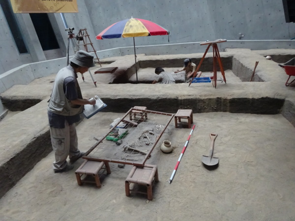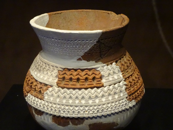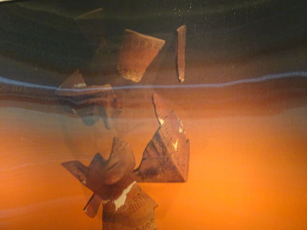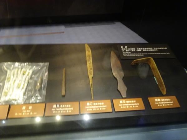 十三行博物館,是考古的博物館,所以展館在地下。 特展 民國46年,發現十三行遺址;民國79年搶救遺址;民國92年,十三行博物館開館 導覽員,活潑生動的解說,我們獲益匪淺,謝謝你! 三D 畫面呈現,體現考古挖掘、拼湊、復原的精神。圖(1) 圖(2) 圖(3) 鎮館之寶 – 人面陶罐是台灣獨一無二的!(實物) 藍色代表海洋,褐色代表山 出土的十三行文化層,有貝塚、動物魚類的骨頭。 十三行文化層,由遺物可推測當時生活。 考古模型 十三行先民的住家模,採高腳干闌式建築,因潮濕多雨,且避蟒蛇蟲害。 進入鐵器時代,仍有石器的使用 進入鐵器時代,左邊是考古出土實物,右邊大型工具,是推測的。 青銅錢幣 手環,常戴在男子上手臂上。浪漫,愛美的民族! 十三行博物館的位置為十三行文化遺址,是目前台灣唯一確定擁有煉鐵技術的史前居民,可能是台灣平埔族凱達格蘭人的祖先。耳環項鍊等飾物。 線條柔美的陶器瓶口 美麗的花紋 在館內的咖啡廳,我們點了咖啡,配著自帶的輕食午餐。謝謝貼心的館員,特別通融我們可攜帶外食。粗茶(咖啡)淡飯(點心),輕語相談,滿足而喜悅! 圖:何鎮揚 文:石淑清