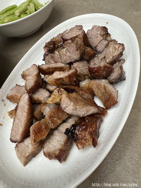 美珍香的肉乾,用熱水燙過後真的像剛烤出來的,也就不會死甜,原來是要方法對才好吃。