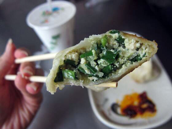 兩種辣椒醬 白菜水煎包 韭菜水煎包,個人最愛這味。 正對面是pizzahut,斜對面往前的路口就是麥當勞。 坐在這用餐,聽到來買的客人都要買肉包,就硬要等著肉包出爐吃到才可。