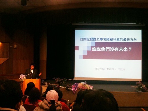 自閉兒也有等待花開的機會, 請不要放棄他們, 並請給予對的方式, 讓他們開啟人生的另一扇窗。 ASD Care Network 自閉症症候群及學習障礙關懷協會 對於台灣人來說,是極為陌生的一個協會,但在美國加州, 它卻已經默默地為自閉兒編織美麗的羽翼許多年。 因緣際會在FB的友情建立,讓我一步步了解自閉兒童他們的不同。 2011年2月20日, ASD Care Network 自閉症症候群及學習障礙關懷協會 創辦人王冠雄(就是我們熟知的那位金馬影帝)在台大集思會議中心演講, 讓我對對這樣的孩子有了更深入的認知。 原來這樣的孩子,只是『病』了, 如同每一個人都會生病一樣,而這個病並非絕症, 他是有機會好的,只要找對方法。 而且他們都是有感覺的人,只是無法表達自己, 那就像是一個個上了發條,卻只能重複做同一件事的可愛玩具, 不會說話,但卻默默地等待仙女賜予他們『生命』, 讓他們可以『自主生活』。 今天王冠雄老師將自己這些年來投入大腦開發計畫的歷程 和大家作了一個簡略卻很動人的分享。 也讓在座許多家中並沒有自閉兒朋友們懂得, 自閉症其實並非絕症,這些孩子也非殘障, 他們需要的是一個正確的『啟動機制』, 讓他們能從睡夢中醒來,繼而進入他應該享有的家庭生活以及美好的未來。 王老師研究的這個大腦計劃中的方法,並非藥物治療,而是科學的激發方式, 讓他們免於太多可怕的,且非常耗費金錢的方式, 以循序漸進的方式讓他們逐步從自己的夢中『甦醒』, 是甚麼樣的方式,我非專業,就不多做贅述, 歡迎有興趣的朋友上到他們的網站去了解。 這場演講的過程中有2位家長分享了他們的孩子從自閉中『甦醒』的故事, 幾度讓我紅了眼眶,那種『失而復得』的喜悅,真的是人間最動人的畫面。 當然王冠雄老師也提到了世界各國對於自閉兒認知的不足之處, 也正因此,才需要更多人去傳播這樣的知識, 不要再讓這些孩子成為相愛夫妻的婚姻殺手, 更不要讓他們錯過自己的人生。 當我們看到一禎禎從自閉世界回到人間的孩子, 那種天真的模樣,洋溢的才華表現, 你真的會想趕快把其他的孩子全部『喚醒』, 因為你不知道下一個喚醒的孩子會是世界上多重要的人。 當然要做這樣『喚醒』的工作並非易事, 但就因為不容易,就更需要去做。 誠如王冠雄老師所言,能力很有限, 但是我卻相信在場那位他往昔工作夥伴的發聲~『有人就有力量』, 縱使是涓滴之水,總會有匯聚成為海洋之日。 所以如果您今天有緣看到我這篇文章, 希望你也能付出一點點的心, 只要願意去了解他們就好, 如果你願意再付出多一點點, 那請加入ASD Care Network 自閉症症候群及學習障礙關懷協會網站的會員 或者您有滿滿的愛心想要幫助別人, 那麼請協助身邊家中有自閉兒的朋友, 讓他們知道這個協會的訊息, 給他們一個可以幫助他們『喚醒』小天使的機會。 最後我想說的是,行善要廣為周知, 因為那將在無形之中回饋給你不可知的正向力量。 讓我們一起把愛擴大,幫這些孩子編織天使羽翼, 讓他們能夠飛翔~~~ |