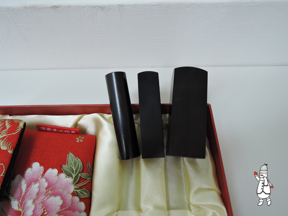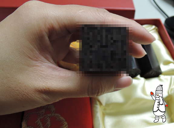 (這是我的個人章,一圓一方) 後來會選擇黑檀木,就要特別感謝店員的專業建議,因為我從來不知道原來木材也有五行屬性,在我傷腦筋要挑選哪一種木材的時候,她提醒我可以提供生日給她,用我的生日去看自己的屬性,推薦適合我的印章材質及顏色,最後推算出來我五行中缺水跟木,而黑檀木這款材質,黑色屬水,木頭本身屬木,特別適合我,可以輔助我補足缺少的水跟木的能量,對我的運勢有輔助跟加分作用,真的很不錯。