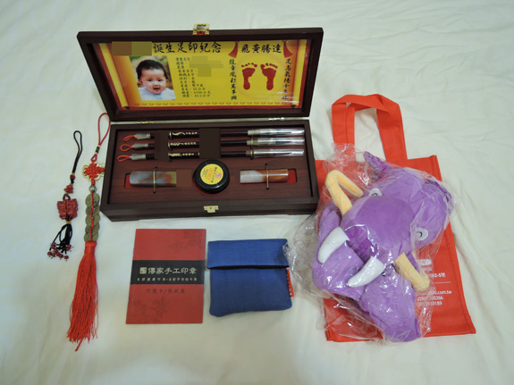 上上個月寶寶出生滿24天,,婆婆請了傳家手工印章的師傅來家裡幫寶寶舉行剃頭儀式,好開心喔!因為我當時還在坐月子,不能出關,婆婆為了讓我也可以參與這個儀式,特地跟傳家手工印章的師傅接洽,在傳家訂製了大三寶組合,然後看了好日子來家裡幫寶寶舉行剃頭儀式,我真的好開心。 那天傳家的師傅來家裡,態度好親切又好專業,知道我很重視小朋友的衛生,在接觸寶寶前都有做消毒,我看了好放心,而且動作很輕柔,整個過程都非常細心,邊用一些傳統的物品幫寶寶講吉祥話,整個場面非常的溫馨,到現在我仍然記憶猶新啊!謝謝傳家的服務這麼好,所以我就打算等大三寶做好之後要來寫篇開箱文推薦一下傳家,今天終於拿到大三寶的成品了,哈哈我要來開箱了!!!