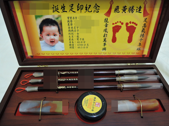 趕快來一一介紹我的大三寶配備吧!!!! 首先先來看看最吸睛的大三寶~胎毛筆、臍帶章、還有寶寶照片跟足印。