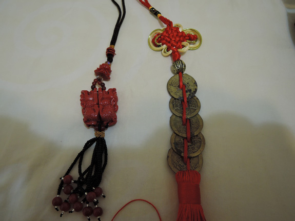 再來介紹贈品部分,哈哈!這最讓媽咪開心了!!!我最喜歡禮物啦! 猜猜這是什麼呢??? 讓我來解答比較快,左邊是一對紅貔貅,右邊是吉祥如意五帝錢,這是店家特地贈送讓我們跟大三寶放在一起的吉祥物品喔!!! 我以前就知道貔貅,是一種類似守財的神獸,因為他愛吃金銀財寶,而且只進不出,吃進去的財寶都守住了!我們家裡財位也有放喔!店家跟我說,這個紅貔貅也有避邪的功用,可以阻擋壞事,可以幫小朋友擋掉一些不好的東西,超讚的! 另外是五帝錢,就是吉祥如意的好兆頭,都是非常棒的吉祥物品我都好喜歡。