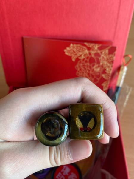 接下來就介紹我們的主角吧~我為我的寶貝挑的是黃藍虎眼石的印章,這個紋路跟色澤不管看幾次還是覺得好好看!看到印章的第一眼就被印章的紋路那種柔順、舒服的感覺吸引,再來就是它的色澤黃黑相間,好像老虎阿!(不然怎麼叫虎眼石啦!)因為我剛好屬虎加上希望我的寶貝以後不管面對什麼困難都能像老虎一樣堅定信念、努力不懈,於是就挑選了這款黃藍虎眼石當作寶寶髮臍章的材質啦~~希望你帶著媽媽的祝福平安健康長大~