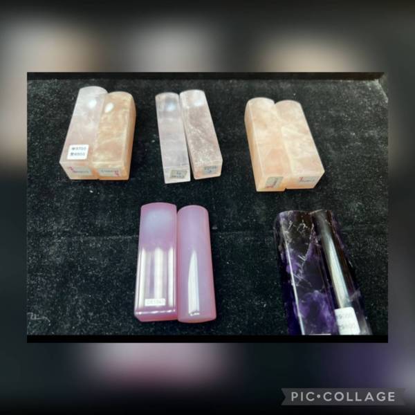 總之,我就在一個風和日麗的午後 走進了傳家印章店,店裡都是親切的小姊姊 小姐姐馬上上前詢問我是不是要刻印章 我說我要刻公司章 小姐姐說 傳家都是用開運印章的方式 可以根據我的生辰還有公司產業類別 依照不同的屬性,推薦適合的材質 聽完我趕緊給出我的生辰並提供給小姐我的公司產業 寫解查詢後 開始跟我講解,我的命格不足之處 應該用什麼材質的印材 才能補足我的不足之處 接下來!!!重頭戲開始了~~ 小姐開始拿了不同材質的印材給我看 有木頭的有水晶的 但因為我和小姐說 我個人偏愛水晶啦XD 所以能不能看水晶就好 當然沒問題~~!!! 於是就在一番激烈的評選後 我先以缺火補火的屬性 挑選屬性屬火的粉色系水晶~