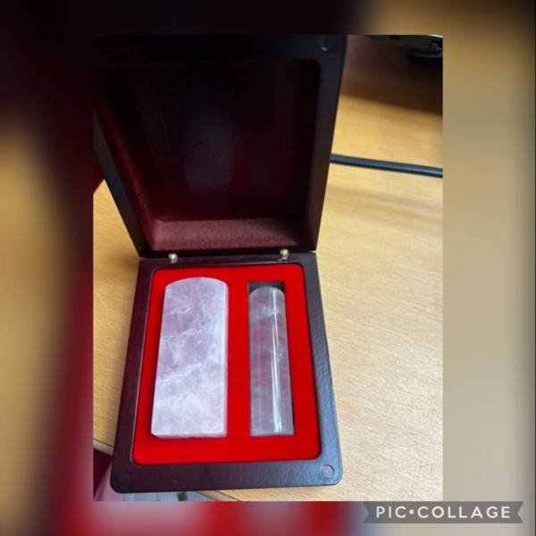 小姐姐說 傳家手工開運印章的字體 都會有開運篆體字 開運篆體字!好厲害! 蓋出來的印章會渾圓飽滿 帶有藝術品的價值 更具收藏意義 好啊!好啊! 那就用這個開運字體 在收到印章後 果然沒有讓我失望 粉晶透亮 印章蓋出來的字也大器 公司章和個人張放在實木的木盒裡 也太配了吧!