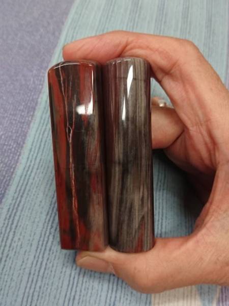 這款木化石的石頭,很有來歷,這是樹木在地底千年後,變成的化石,又稱樹化玉 這款木材硬度有七度,密度和重量都很好,整個拋光的亮度和光折度都很漂亮,好像寶石一樣,散發光芒 同時這個木化石也有合到爸爸的八字五行。爸爸八字五行喜用的是火和木。而這個木化石就是屬於木,因為這是木材在地底千年的化石,本身就帶到木,還有顏色有如紅色的火焰顏色,在五行就是屬於火,兩個五行屬性都有補足。 我也請陳小姐排了八字,看看我家小寶的八字有哪些,沒想到居然根爸爸一樣都是屬於木火 於是我就定了兩個木化石圓章,給爸爸和寶貝做紀念。