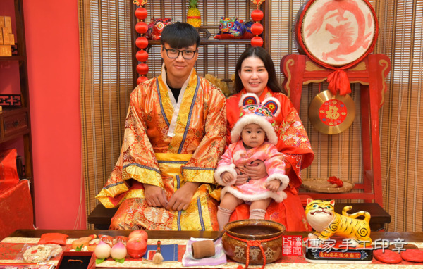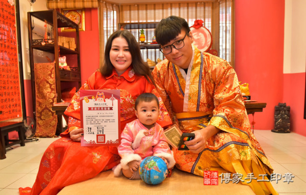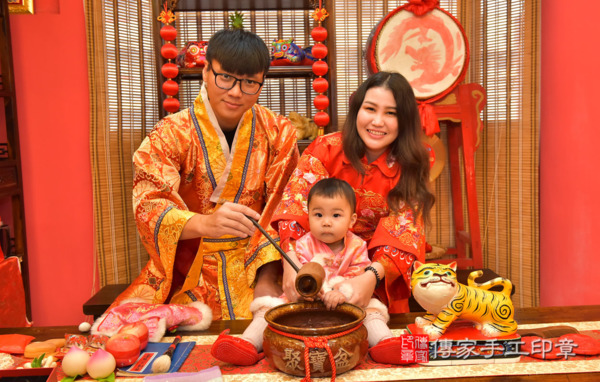 高雄何家來抓周~全家身穿中式古禮服,吉祥喜氣~