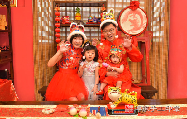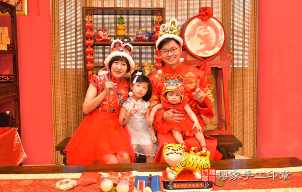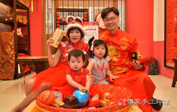 高雄陳家來抓周~全家身穿中式古禮服,漂亮又喜氣~