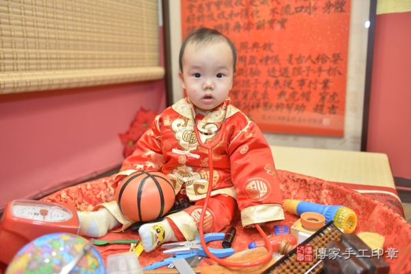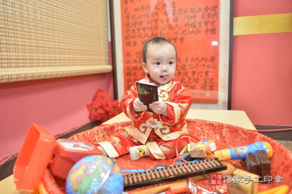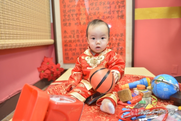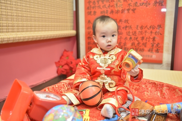 今天是新北高寶寶來抓周的日子,身穿中式紅底金色飛龍刺繡古裝禮服喜氣吉祥又福氣!今天一起來看看高寶寶抓到些什麼吧~