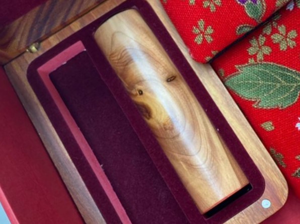 因為龍柏是很珍貴的材質,加上避免摔壞的事情再度發生 為此我也特別幫我的印章訂製了加價的手工木盒存放 這個木盒和印章一樣都非常有質感,把印章放在裡面再收進抽屜就不怕印章從桌上摔壞了!
