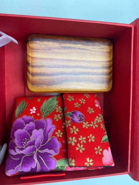 另外如果沒有選加價傳家也會附贈旁邊紅色的繡花隨身布包,這個布包也是純手工縫製而成,超級有心的~~~