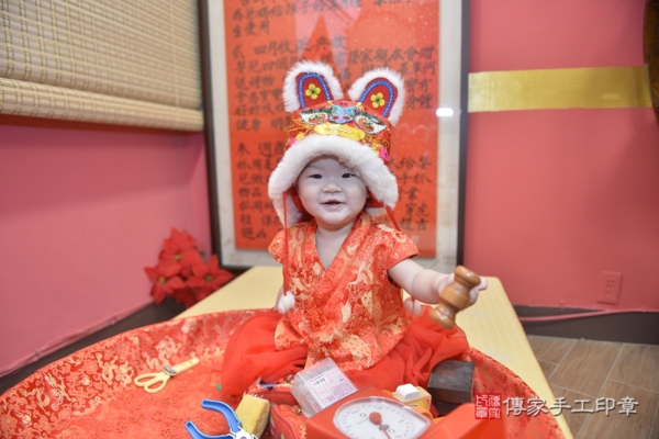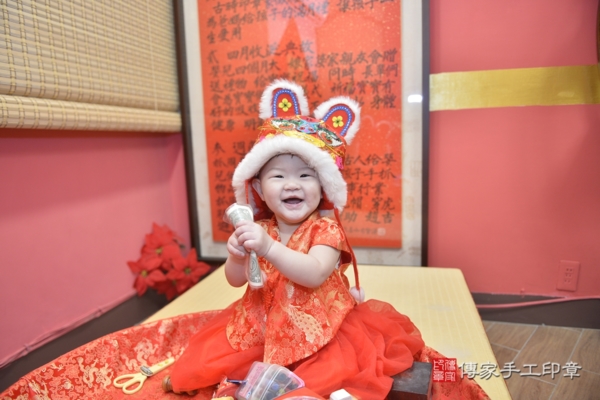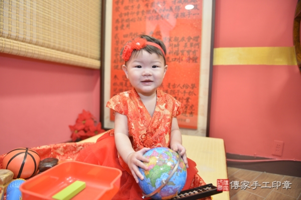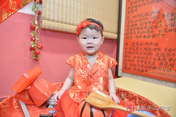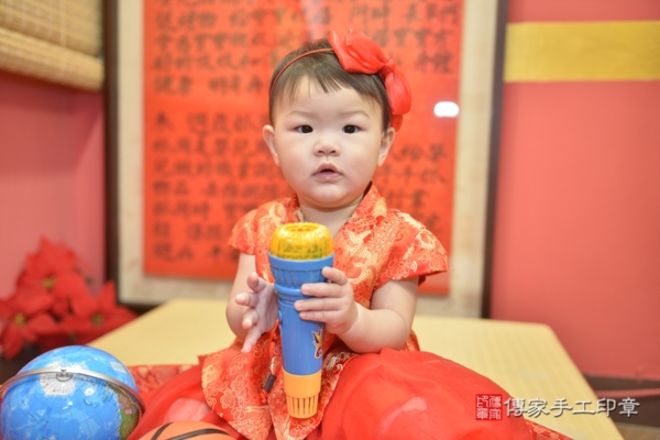 今天是台中蘇寶寶來抓周的日子,身穿火紅鳳凰百花刺繡兒童古裝禮服,混搭蕾絲珍珠花朵髮帶及緞帶蝴蝶結髮箍,一襲紅色系列服飾配件象徵喜氣、圓滿!一起來看看蘇寶寶的抓周花絮照吧~