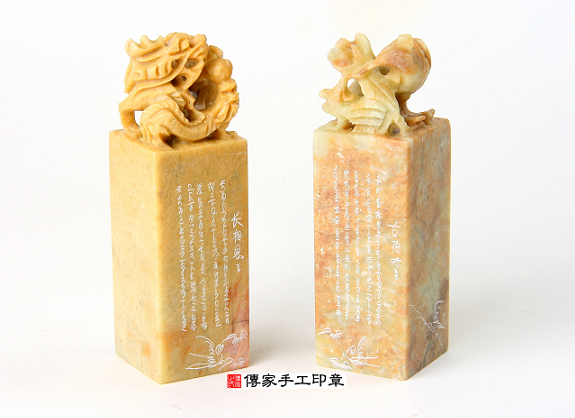 臍帶章:個人印章加上1200,就可以做臍帶章。 1. 玉石類的印章,因為取材不易,所以個人的印章尺寸,通常都會依照現有的礦材去做最大的利用。 |