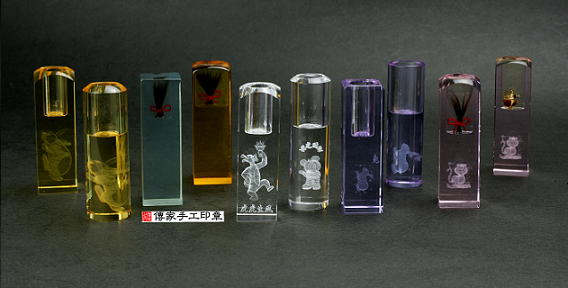 l           傳家手工印章嚴選高級「彩色科技水晶臍帶章,十二生肖造型」。每一個彩色科技水晶臍帶章,都可以將寶寶的生肖放入印章裡面,讓印章除了可以使用以外,又多了一個紀念的意義。