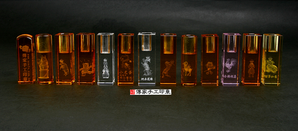 11.     各種顏色的科技水晶臍帶印章。(每種都可以製作12生肖的圖案)