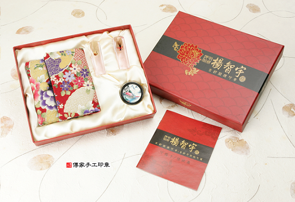 3. 印章的雙章贈品為一套 (一個手工製作印章外出袋 + 一個高級艾絨印泥,多加一套加100元)。