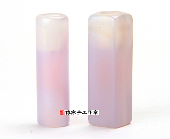 l           傳家手工印章嚴選高級「紫瑪瑙」。瑪瑙的硬度很硬,大約是7度~7.5度,比重2.65,色彩相當有層次感。是頂級的印材之一。