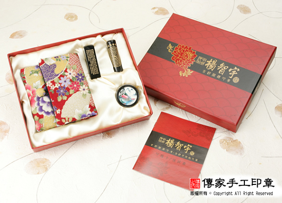 1. 以上價格的印材 - 紅紫檀木、玫瑰檀木、綠檀木、黑檀木、赤牛角可以任選,價格相同。 2. 紅紫檀木、玫瑰檀木、綠檀木、黑檀木、赤牛角 加刻經文加500元。 3. 印章的雙章贈品為一套 (一個手工製作印章外出袋 + 一個高級艾絨印泥,多加一套加100元)。 |